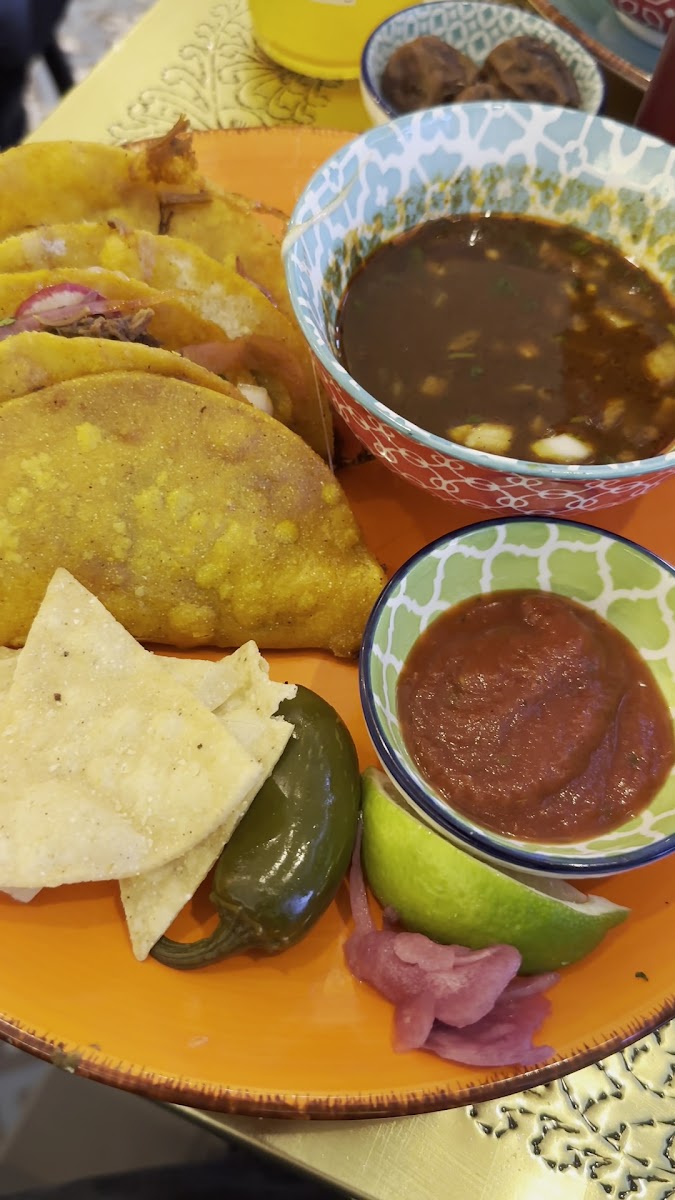 But it's not just the tacos that shine. The restaurant also serves a variety of other popular dishes like Chicken Tacos, Al Pastor, Cheeto Street Corn on the Cob, Birria Ramen, and even Churros with Chocolate Sauce for dessert. If you're looking to pair your meal with a drink, don't miss the Jarritos Mexican Soda or a refreshing Pineapple Jarritos, both perfect to wash down your tacos.